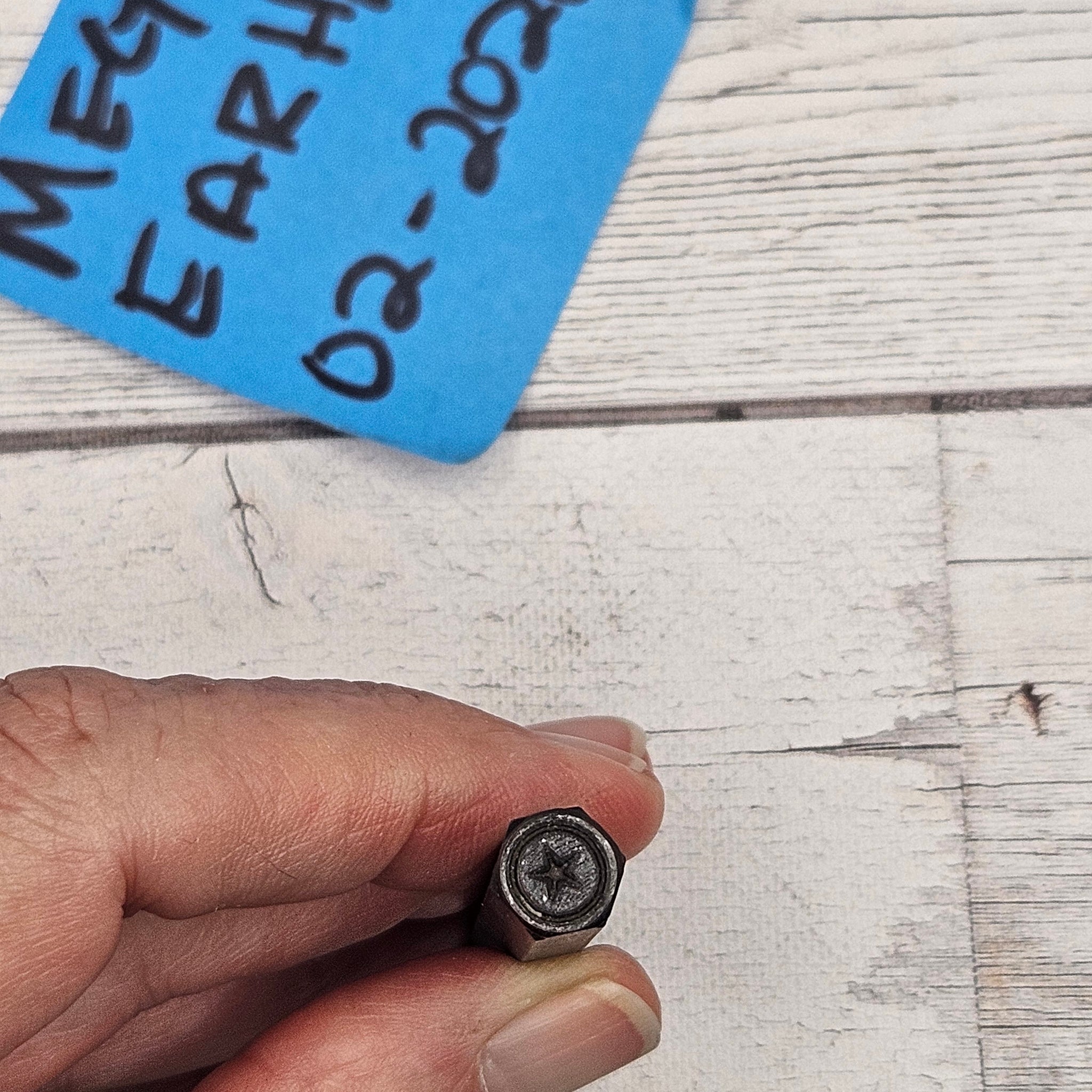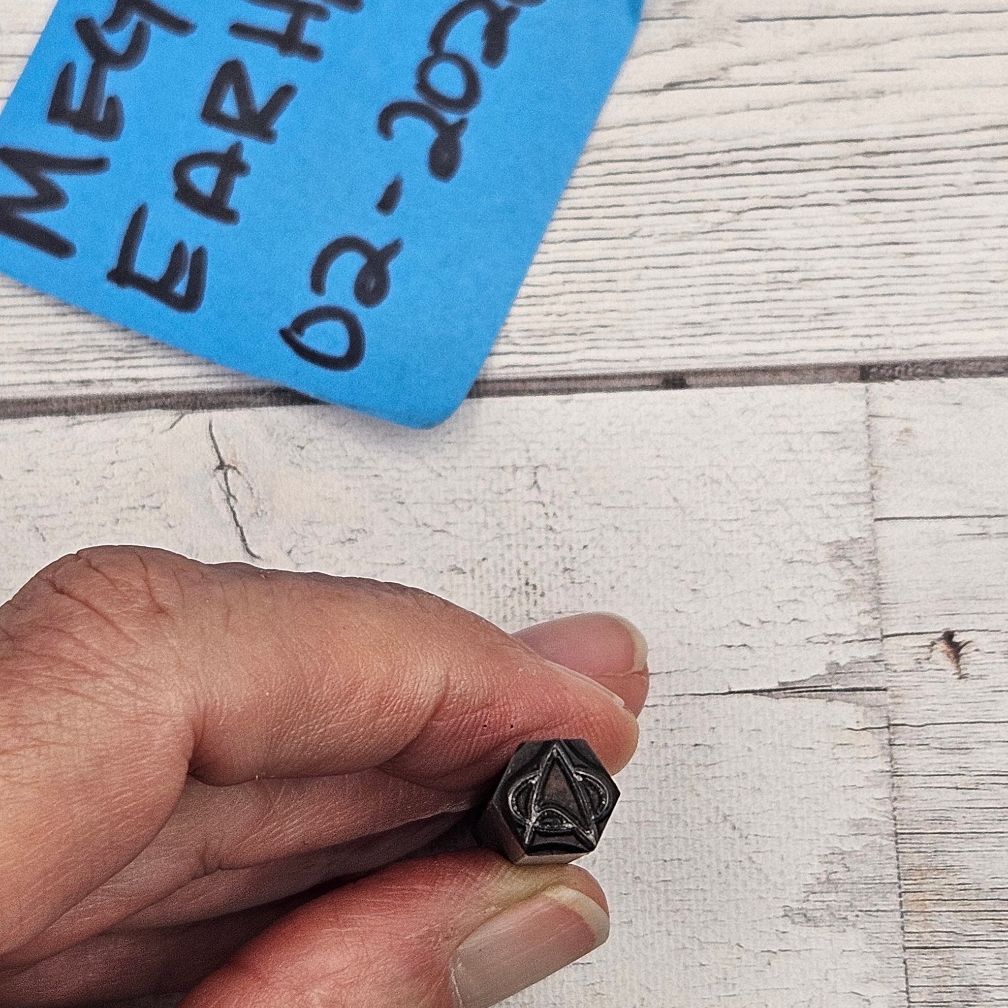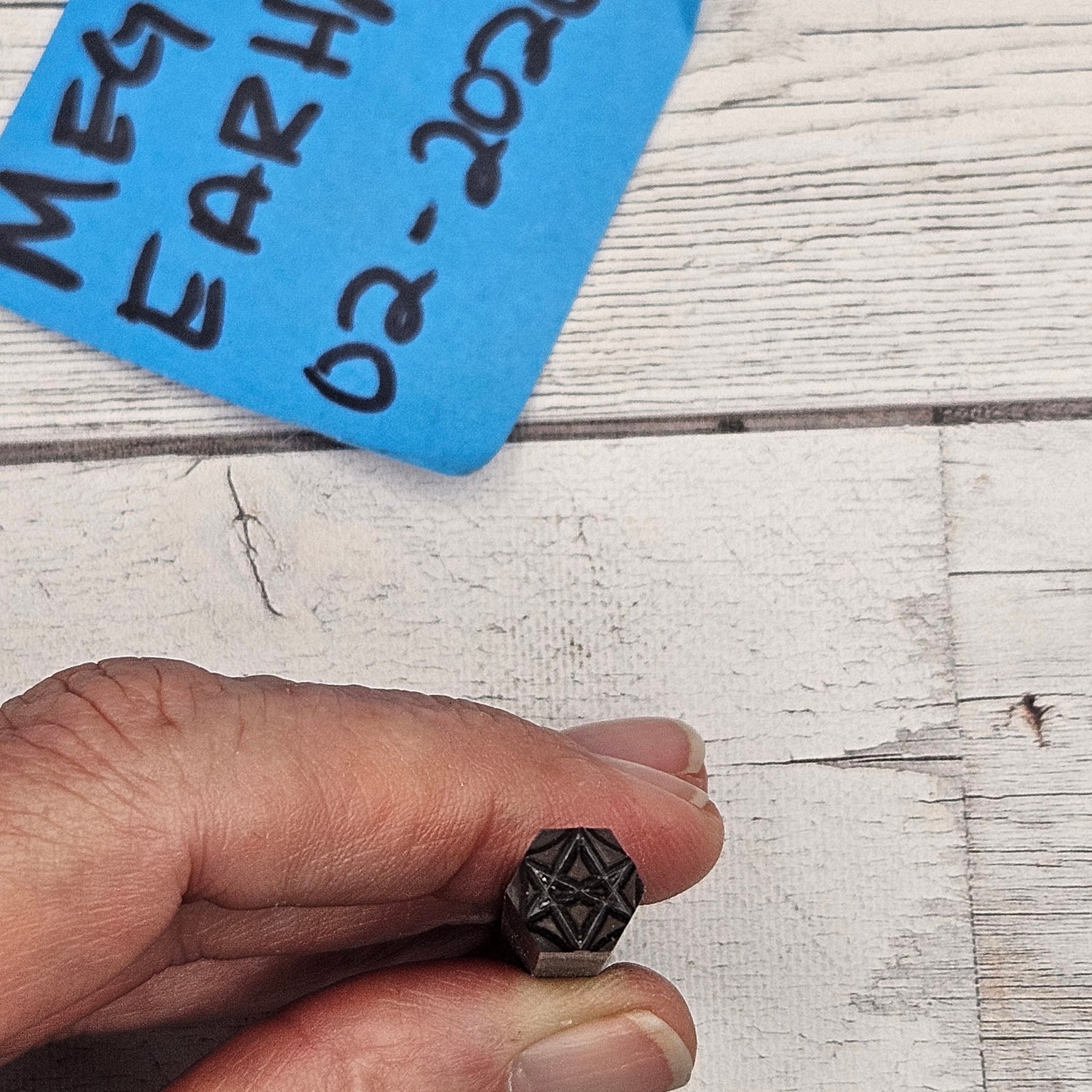 Custom Morando design stamp as pictured. Used on soft metals (copper, aluminum, bronze) and in ok condition. these are in good condition with varying levels of ease in stamping. The solid designs are easier on the softer metals (alum, pewter) not as easy on copper or bronze.