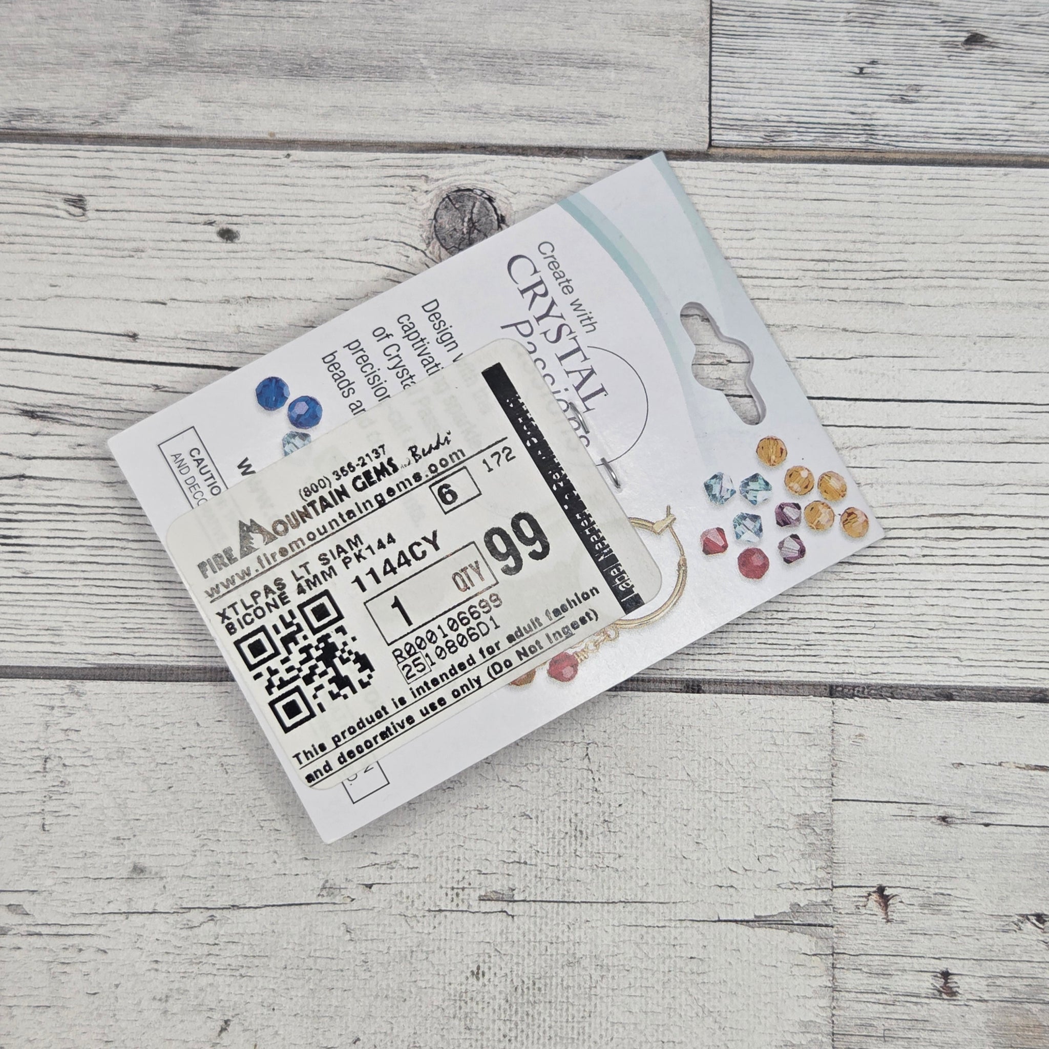 Purchased from Fire Mountain Gems. Unopened. Package of 144 beads. Crystal Passions Austrian Crystal Bicone