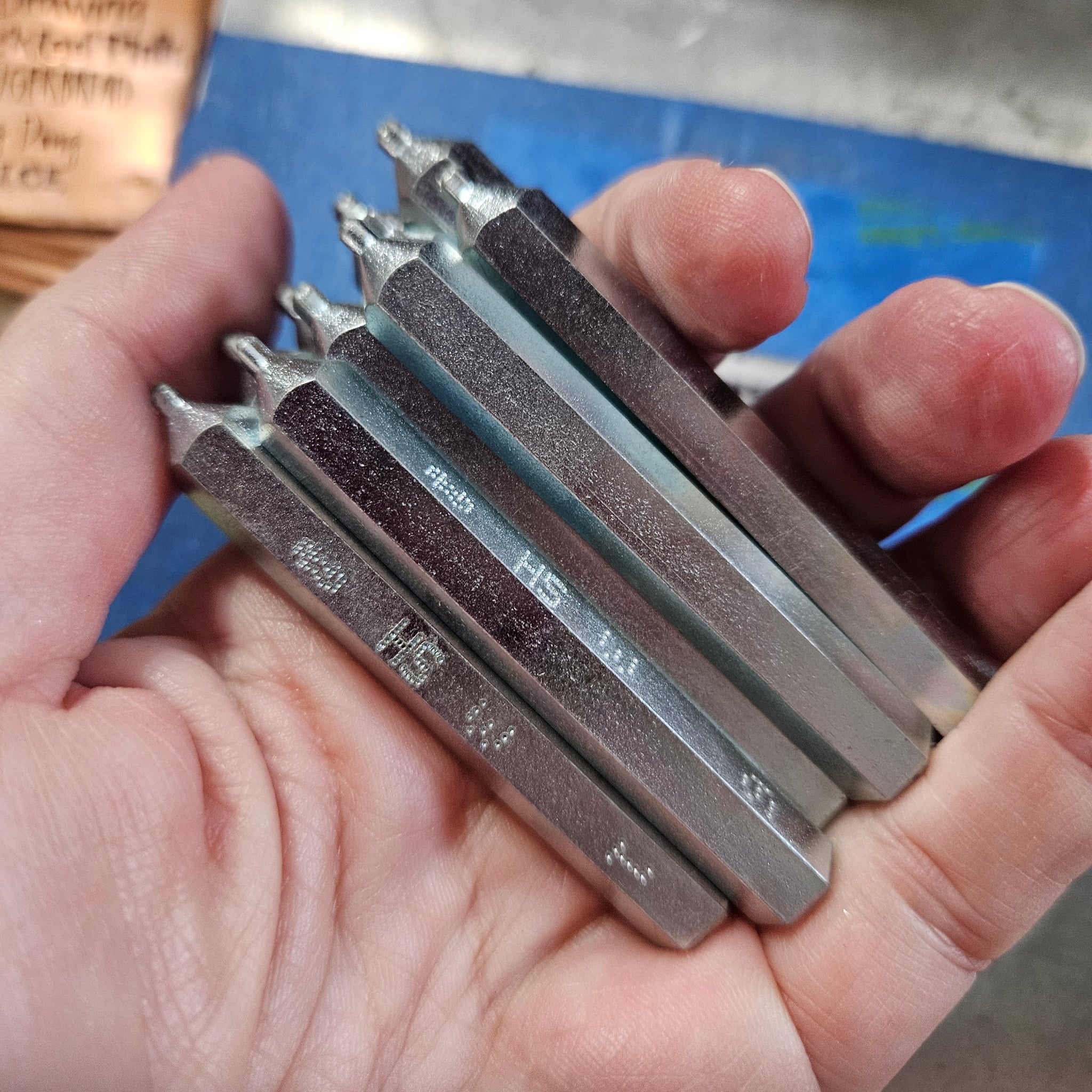 I am retiring and destashing all of my stamping tools. All tools have been used on soft metals only (aluminum, copper, bronze) and come in original boxes. in excellent condition with no rust or chips. This set of numbers is the old silver version of the morando tools. I do not have the boxes for these.