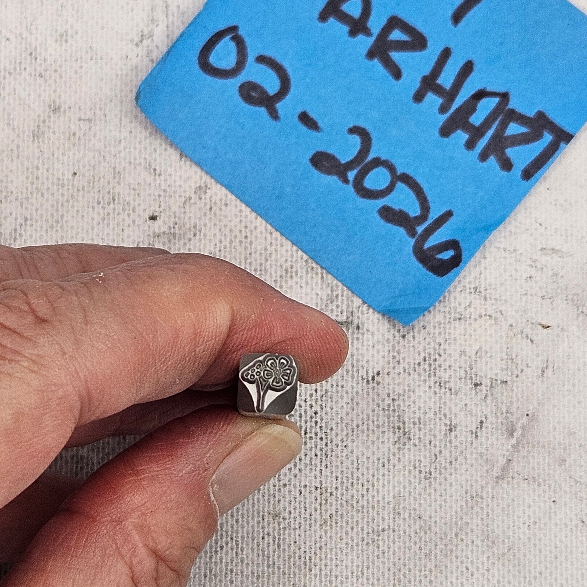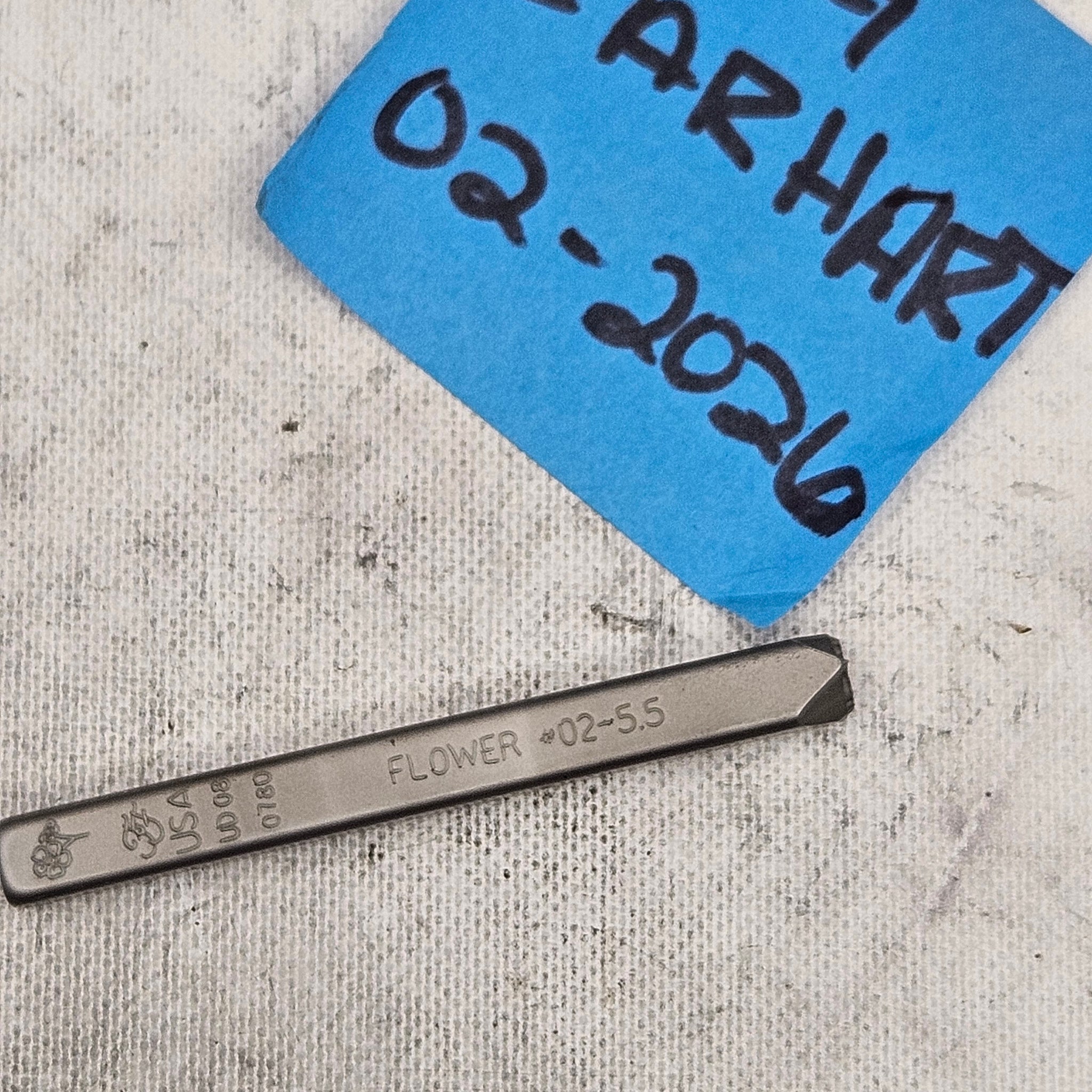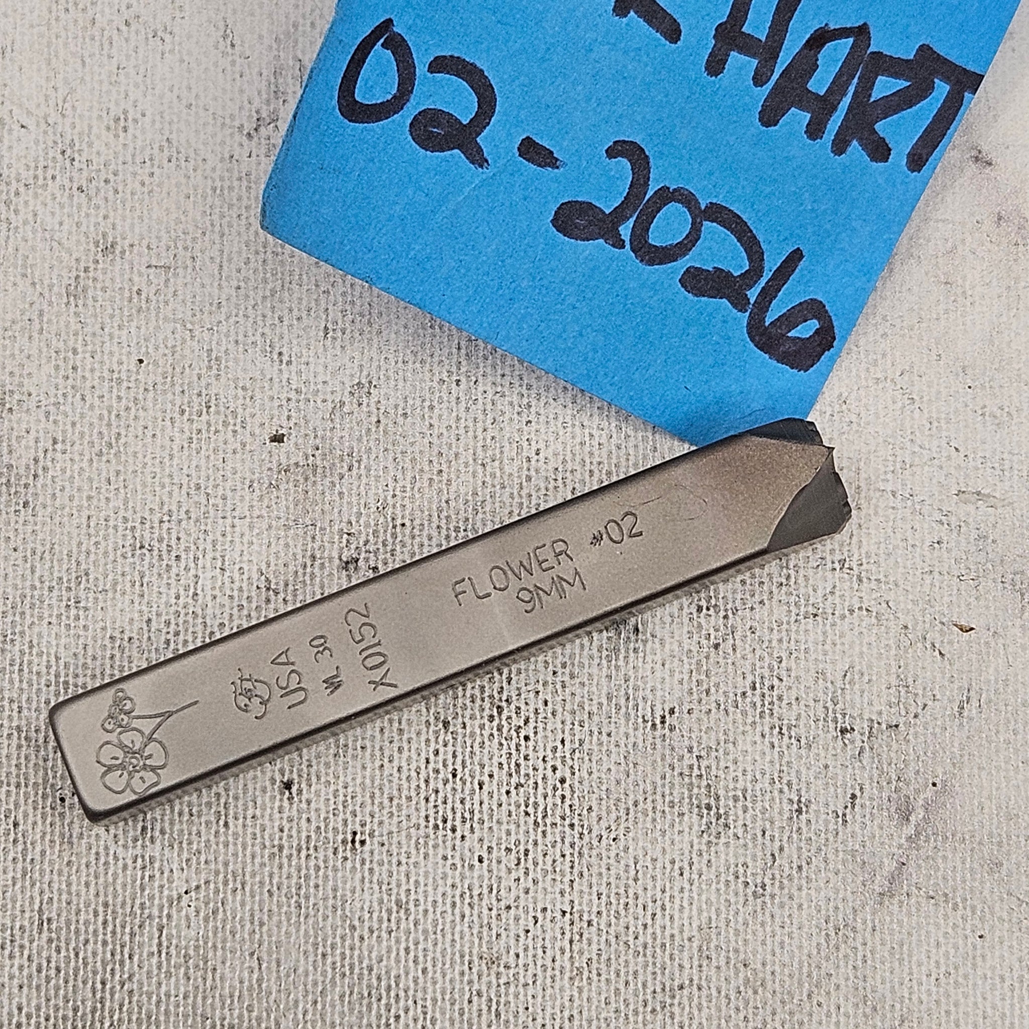 Font Fixation design stamp as pictured. Used on soft metals (copper, aluminum, bronze) and in excellent condition. Come in the original shipping tubes.